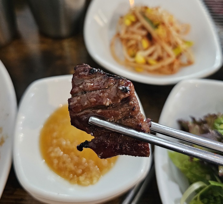 숯향 가득한 갈매기살이 양념도 간간히 잘 베어있고 정말 부드럽고 촉촉해요. 간혹 길 지나갈때 냄새 좋다고 생각한 적은 있어도 먹으러 들어가볼 생각은 못했는데 여기 정말 강추 합니다. 다음에는 양념 삼겹살도 꼭 먹어 보고 싶네요.
